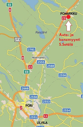Auto- ja konemyynti S. Setälän toimipaikka sijaitsee Satakunnassa, Pomarkussa valtatie 23 varrella, noin 26 km Porista pohjoiseen päin.